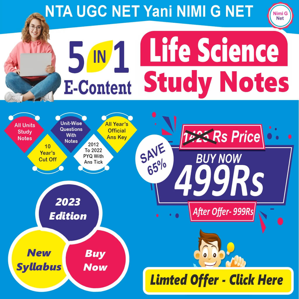 UGC Net Life Science-Study Notes With Mcq, PYQ Paper With Ans Tick, Syllabus or Cut Off ( 5 In 1 E-Content)